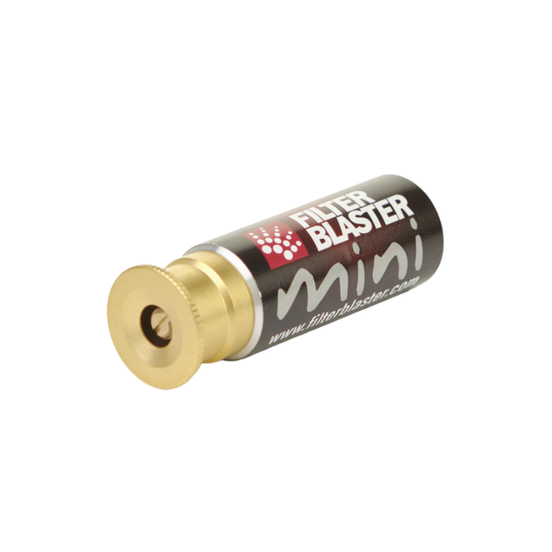 Bij Filter Blaster Mini zit een nozzle van 25 mm. Voor gebruik is alleen een luchttoevoer van 90 PSI of meer nodig.